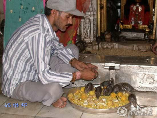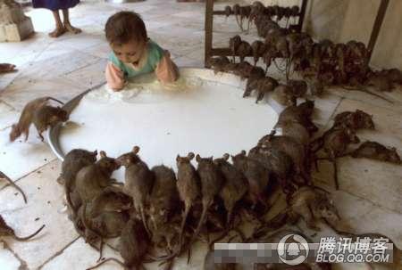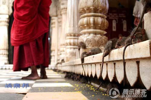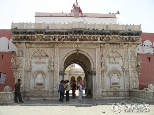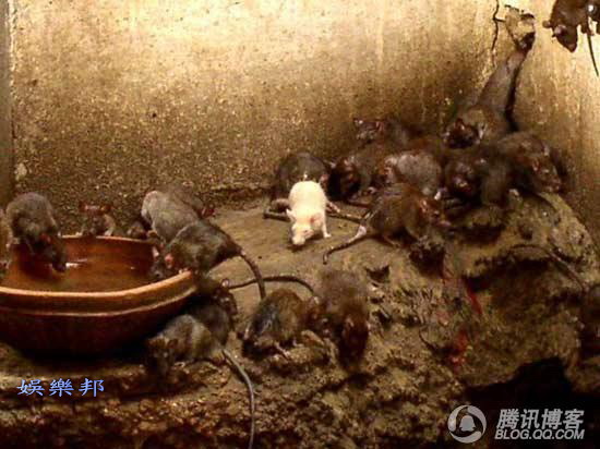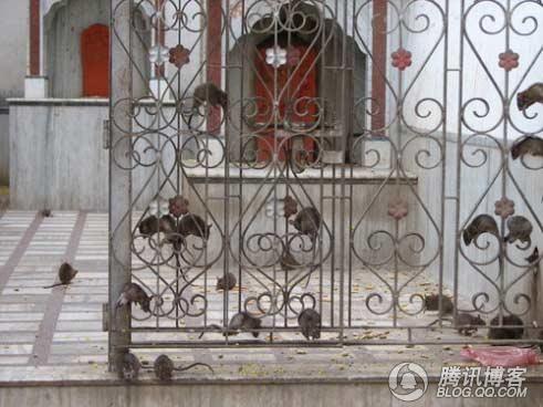 開開眼界--印度老鼠廟(貓不去廟) ![]() 印度 老鼠廟 老鼠神廟,又名卡爾尼·瑪塔神廟 (Karni Mata寺廟)。位於印度北方,是印度著名文化遺產。六百多年來,每天都有成千上萬的信徒進廟膜拜。1927年年,印度流行鼠疫,死者無數,只有這裡平安無事,令人嘖嘖稱奇。 ![]() 印度 老鼠廟必須脫鞋進入 從外面看印度 老鼠廟 廟宇異常潔淨,也無異味。銀色大門刻滿動物植物圖案。其中一張是鴿鼠爭食的合影。不收門票。但是必須脫鞋進入。國外遊客大多把鞋脫在印度老鼠廟外,而當地人把鞋放在門裡。 相傳在十四世紀時,有一位名叫卡爾尼·瑪塔 Karni Mata的印度教女祭司,而她就是女神多迦 (Durga) 的化身。有一天,一個來自她家族的孩子死了。那個孩子的母親抱著死去的兒子來求卡爾尼·瑪塔 Karni Mata,希望能夠將兒子復活。 卡爾尼·瑪塔 Karni Mata 立刻去了冥界,找死神亞瑪羅闍 (YAMARAJA)理論,但死神拒絕了她的要求,因為那孩子的靈魂已經轉世了。卡爾尼·瑪塔 KarniMata一怒之下宣佈所有她家族的成員死後都會立刻轉世成老鼠,直到能夠重新轉世,並且出生在她的家族,繼續當她家族的成員為止。